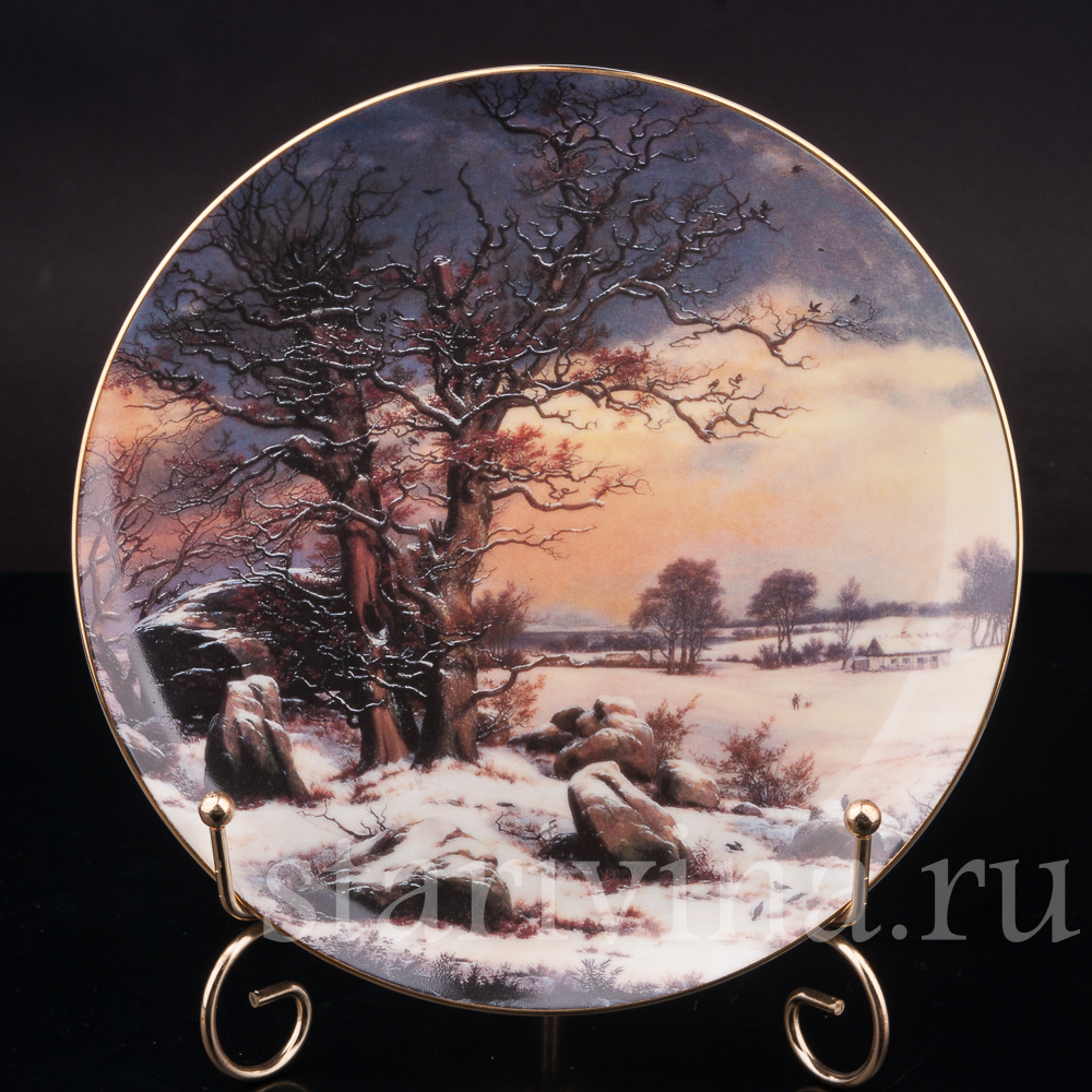 Декоративная тарелка из фарфора Зимний пейзаж в Вордингборге, Дания, 1991 г.